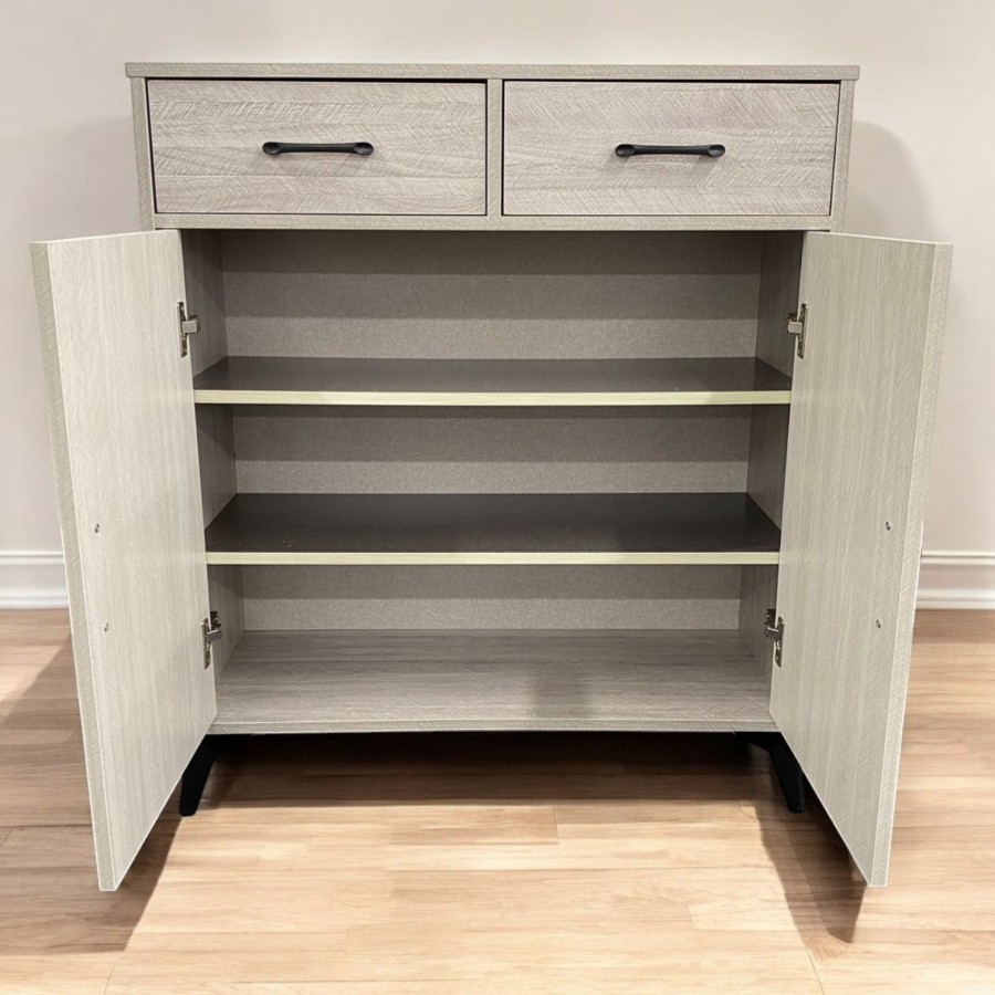 - Ample Storage: Features two top drawers for keys, mail, or accessories, and two large doors for neatly tucking away shoes.