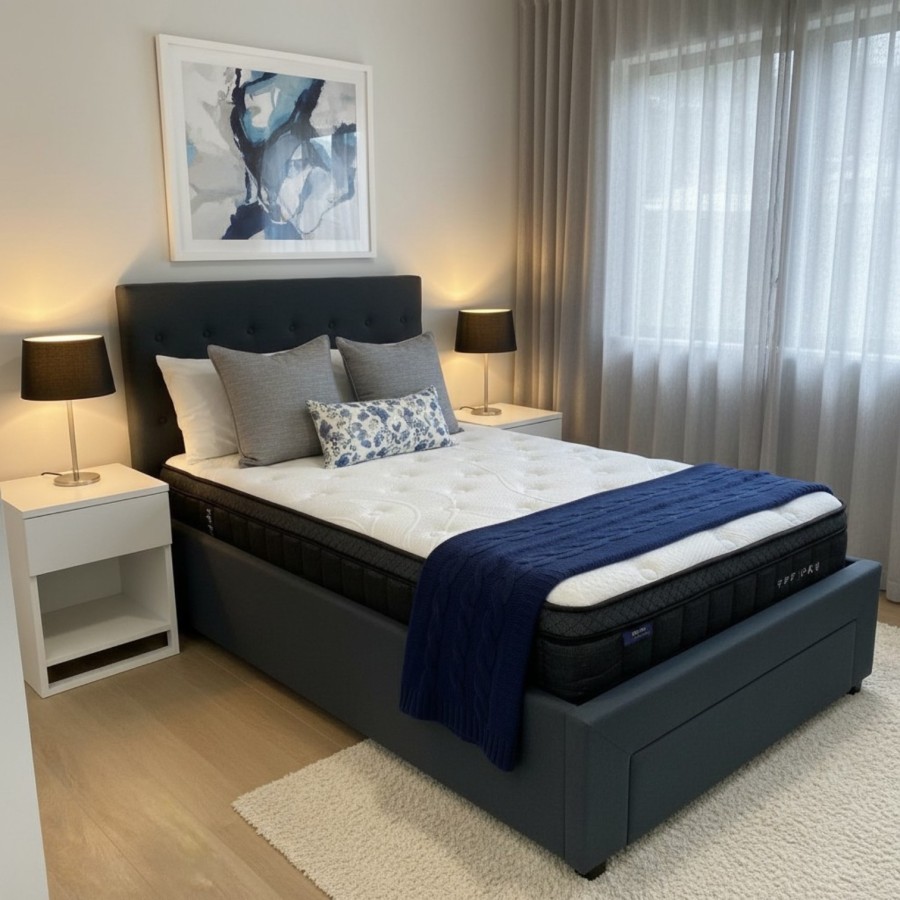 Elevate your bedroom with the perfect blend of style, comfort, and practical storage. This stunning bed frame, featuring a contemporary button-tufted headboard and a clever end drawer, is the ultimate addition to any New Zealand home.