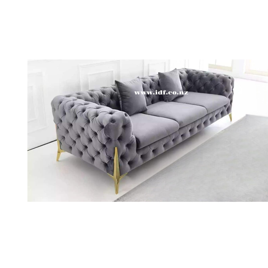 Tags: modern, Gray, Velvet, Fabric, chesterfield, 2 seater, 3 Seater, Sofa