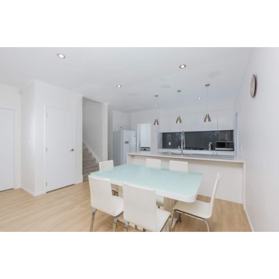 High gloss white with glass top dining table.