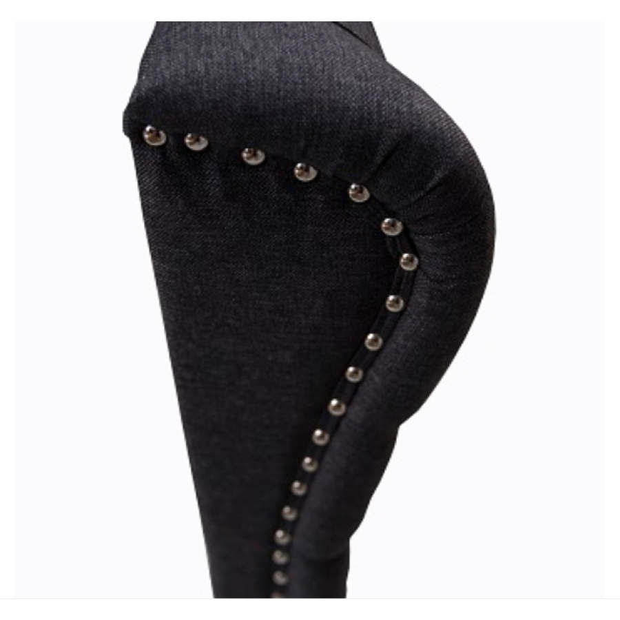 This bedside is designed with metal dots on both sides.