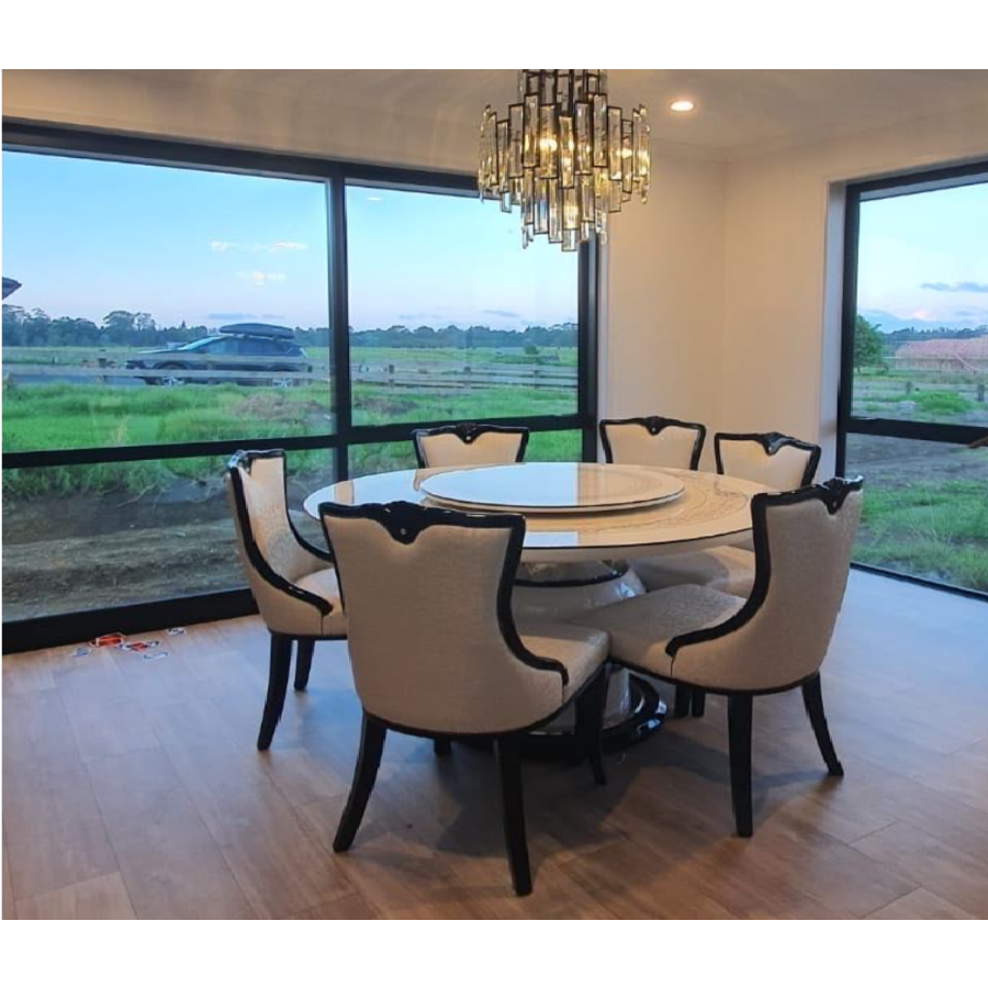 The round table size can be customized according to personal requirements and can accommodate 4-6 seaters.