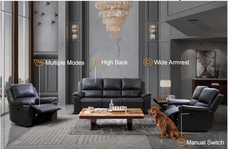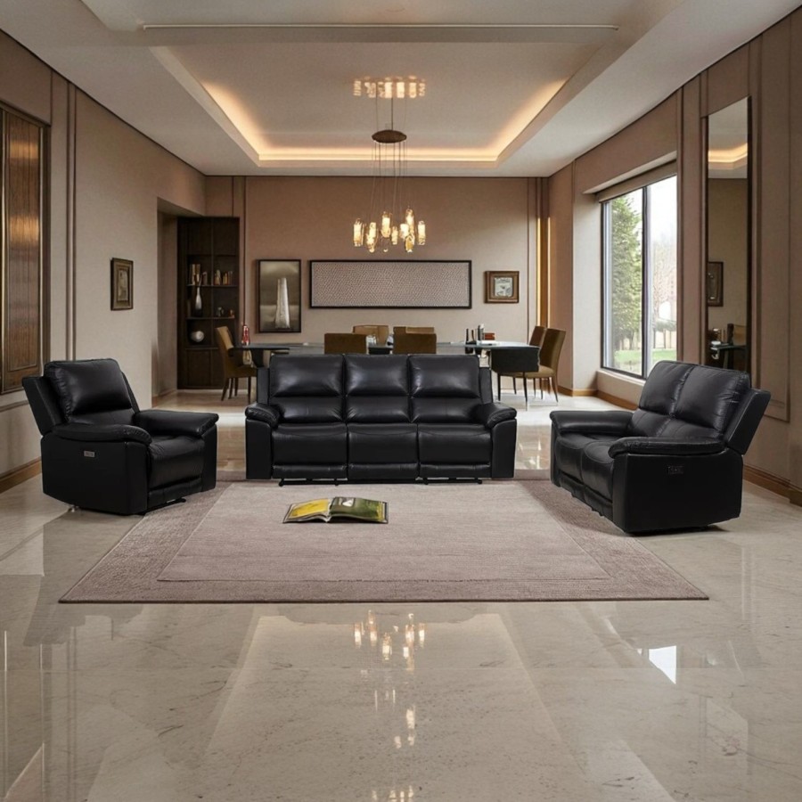 Tags: 1, 2, 3, Seater, Black, Genuine, Leather, Recliner, Lounge, Suite
