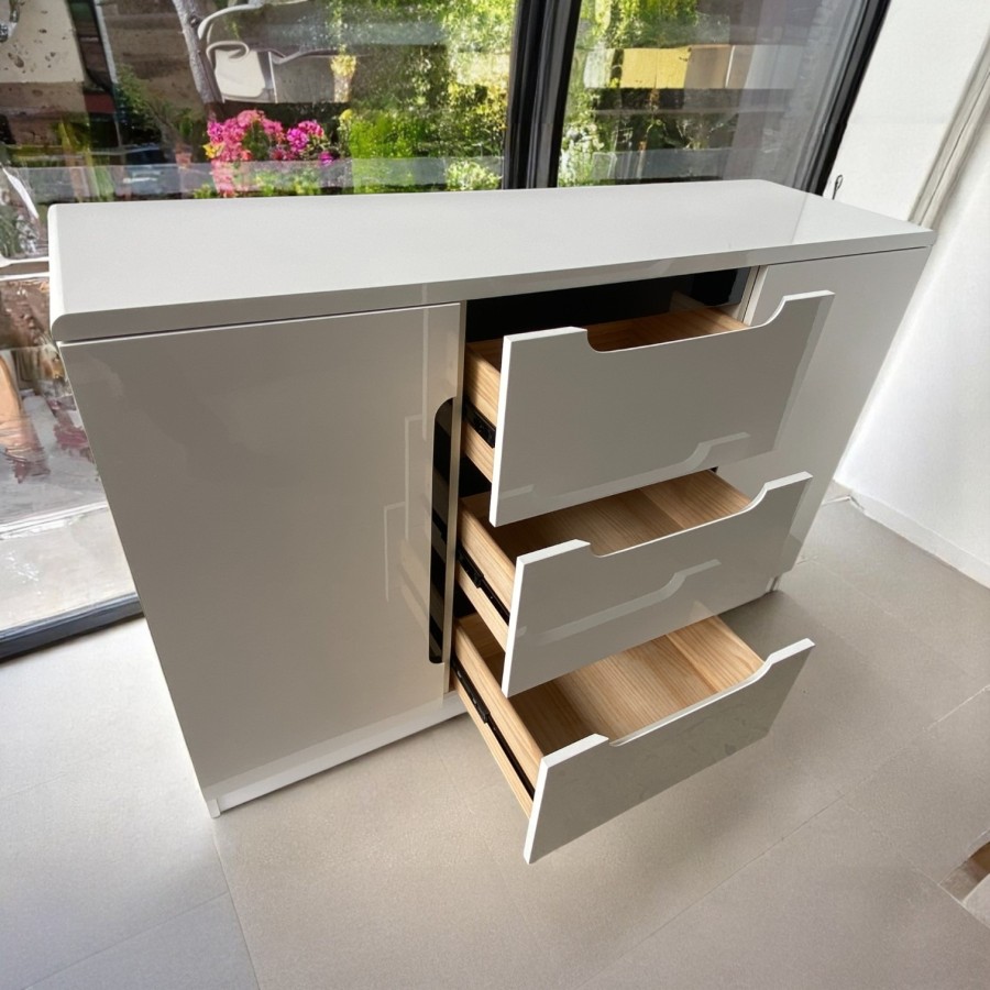Superb Construction: Rest assured that the Mont Buffet cabinet is built to last because it is carefully crafted, moreover, it is made of MDF and solid wood, and is finished with a high-gloss white PU paint.